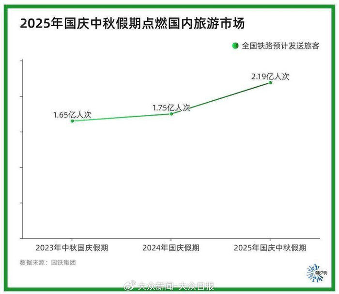 据中青旅遨游旅行相关预定数据显示,游客在2025年国庆旅行出行天数平均达9.4天,较五一假期出行天数增长1.5天,同比去年国庆假期增长0.8天,平均旅游消费较去年同期增长2.8%。