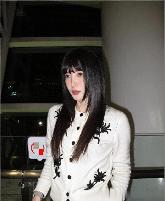 江疏影剪了齐刘海大变样! 穿刺绣针织衫+棕色长裤, 时髦又高级