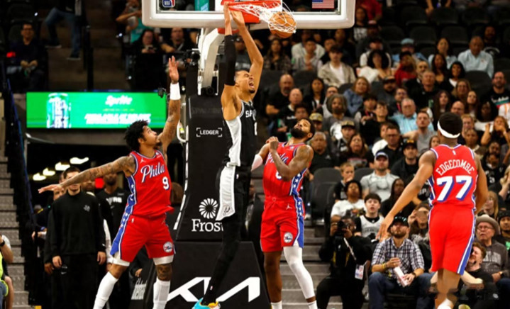 末节还剩3分33秒,卡斯尔抢下防守篮板,三双达成。19分11篮板13助攻1抢断1盖帽,这是他生涯第一次三双,也是马刺本赛季最硬的一场胜利。文班亚马只打了15分钟就因左肋挫伤退赛,两次返回更衣室,下半场没能再回来。然后马刺赢了。115-102,马刺主场击败76人,时隔9年,单赛季豪取60胜。恩比德空砍34分12篮板4盖帽,乔治16分,马克西15分8助攻,却挡不住没有文班的马刺。