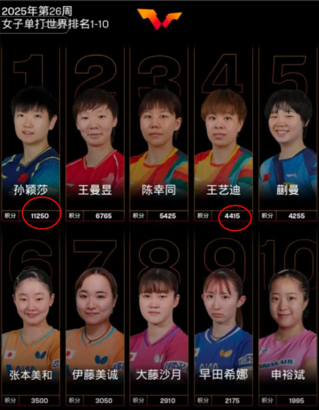 况且,美国大满贯这战只是国际乒联积分大赛,并不是世界三大赛。还有,孙颖莎如今8个冠军堆叠的总积分高达11250积分,断层领先世界第二王曼昱4485分,这个多出来的积分,都能比世界第四名王艺迪的4415分高出70分。